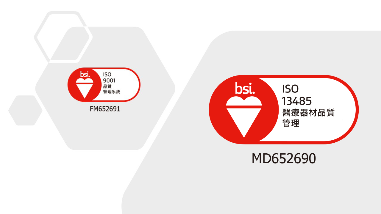 億瑋塑膠股份有限公司已通過ISO 9001:2015、ISO 13485 2016認證成為認證合格製造商,