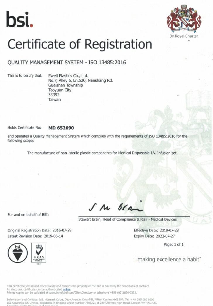 在億瑋塑膠, 我們承擔準時為我們的客戶提供最優質產品的責任。 億瑋塑膠已通過ISO 13485: 2016 認證, 億瑋塑膠滿足了最苛刻的醫療設備製造商的期望。 無論是有問題的客供移轉模具還是複雜的新產品, 億瑋塑膠都能提供您期望的品質質量。